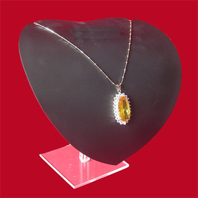 A stylish heart-like fashioned acrylic display ideal for both gem studded gold, silver and platinum necklaces. This jewelry display aims to exhibit your products both in a practical and in an aesthetic way and is available in four colors. |