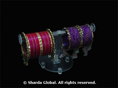 Clear acrylic T-bar necklace and bracelet display made with endcaps on the bars to prevent jewelry from slipping off. |