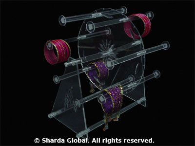 Innovative styling coupled with quality acrylic makes it an aesthetically appealing revolving display. This exquisite 14-rod product secures bracelets/bangles within, drawing the customer’s awe. Also, being totally foldable makes it easily transportable |