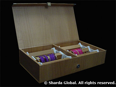Teak wood finish jewelry storage box for brackets and bangles. This box comes specially equipped with locking system of 6 rolls to avoid mismanagement of handling precious jewelry |