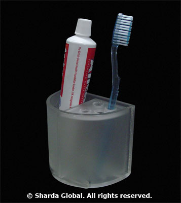 This semi-circular stand has smooth edges to accommodate all of ones toileteries like tooth brush, tooth paste, dental floss, shaving razor and gel. |