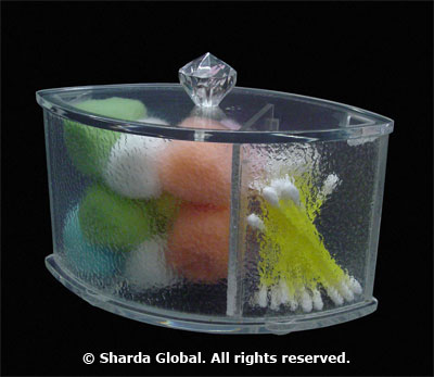 An exclusive acrylic piece made with a locking lid. Perfect for keeping cotton balls, earbuds and other supplies in your dressing table/bathroom/closet. |