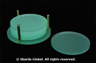 The coaster stand is made up of three gold plated brass rods around the circular surface to hold the coasters. The set includes a set of six coasters and one coaster stand. Coasters hold tea/coffee cups and glasses on the tabletops thus avoiding spillage. |