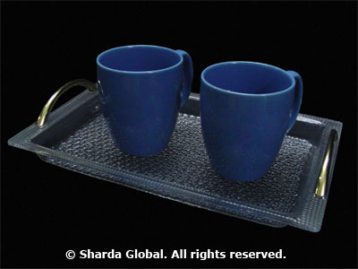 This handsome dot patterned acrylic serving tray is a must-have for offering appetizers and beverages at any party. The tray also comes with customizable contemporary brass handles and is available in 3 sizes. |