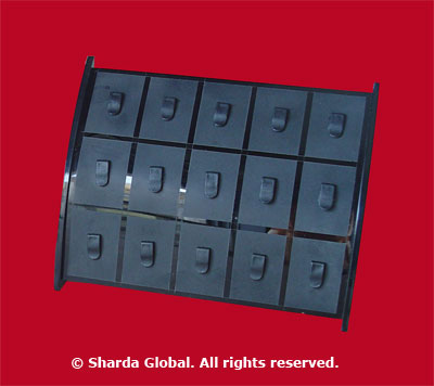 A stylish D-shaped acrylic display used to showcase 15 finger ring/pendant collections. |